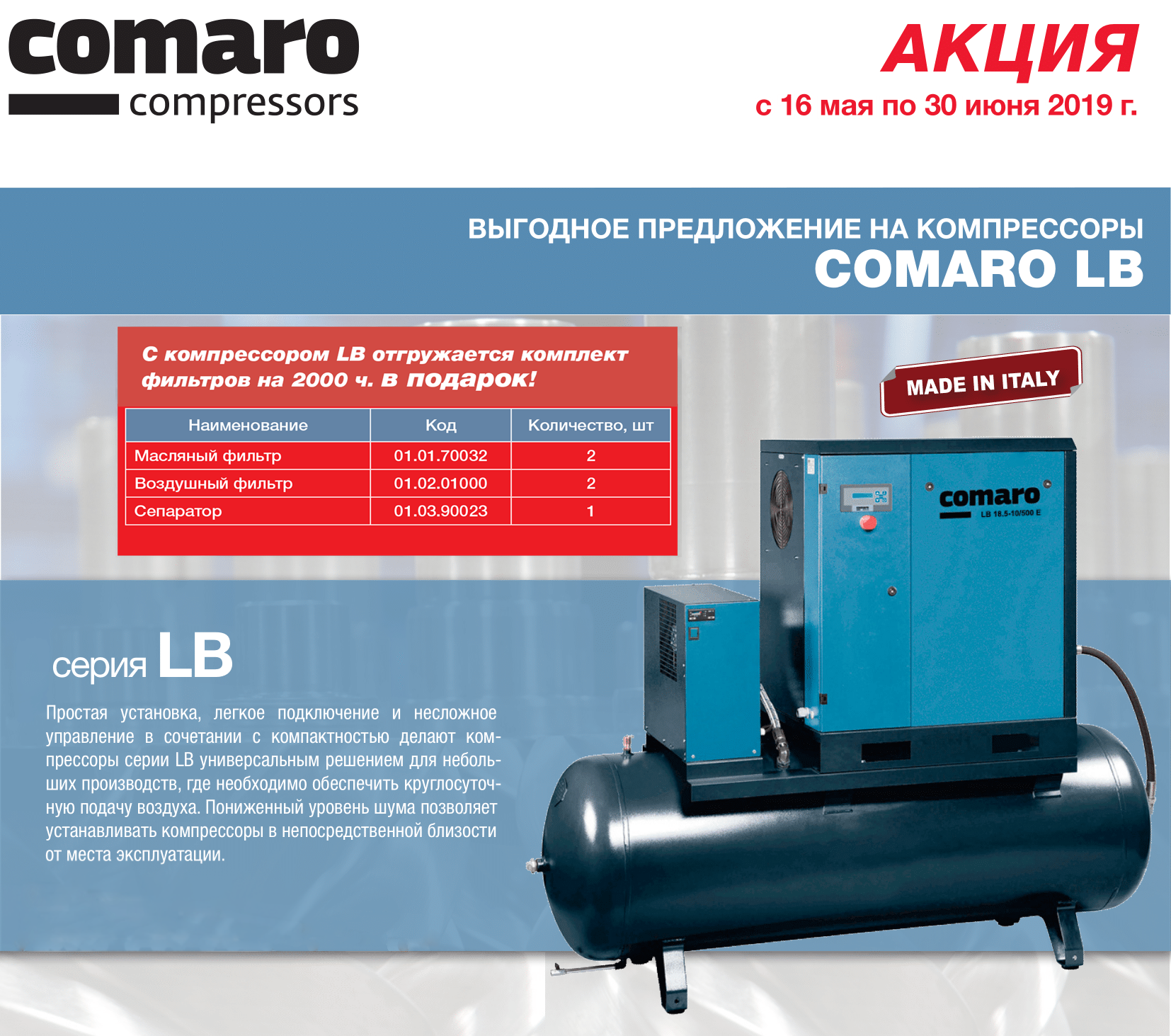 -Выгодное предложение на компрессоры Comaro LB